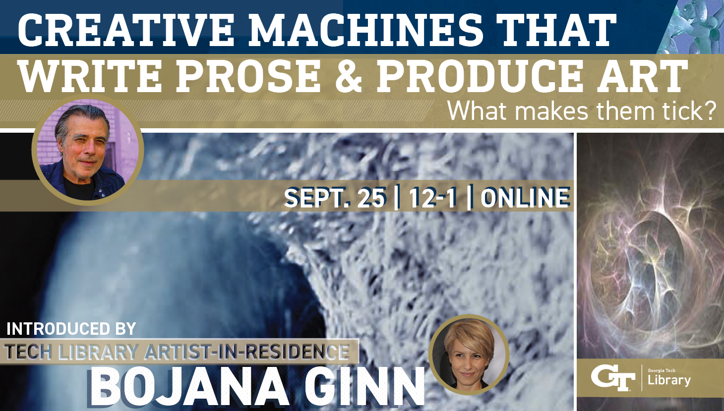 Join Arthur I. Miller, Emeritus Professor of the History and Philosophy of Science at University College London, online Wednesday, Sept. 25 from noon to 1 p.m. for Creative Machines that Write Prose and Produce Art: What Makes Them Tick? hosted by the Georgia Tech Library and moderated by Media Artist-In-Residence Bojana Ginn.