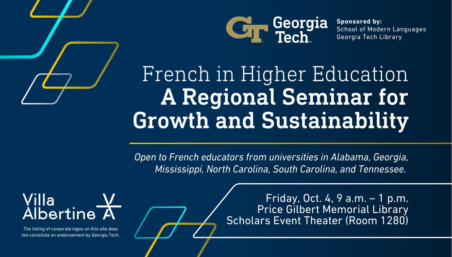 Villa Albertine, in partnership with Georgia Tech’s French program in the School of Modern Languages, welcomes you to a France-Atlanta seminar, French in Higher Education: A Regional Seminar for Growth and Sustainability.