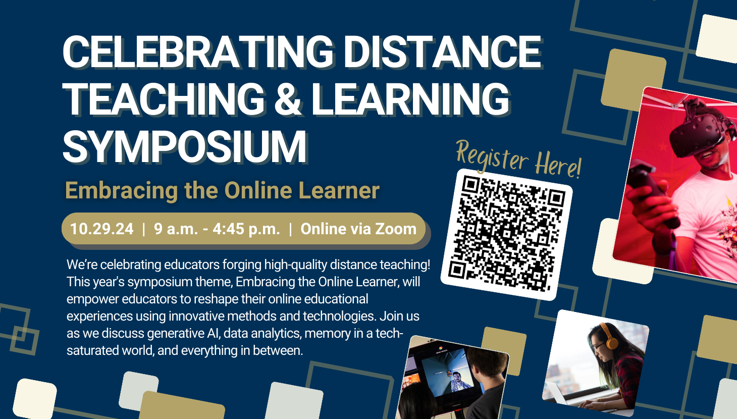 During the Georgia Tech 2024 Celebrating Distance Teaching and Learning Symposium (CDTLS), we'll celebrate the educators who have forged high-quality distance teaching practices. This year's theme, Embracing the Online Learner, will focus on students in the online environment and feature sessions designed to empower educators to reshape their online educational experiences using innovative methods and technologies.