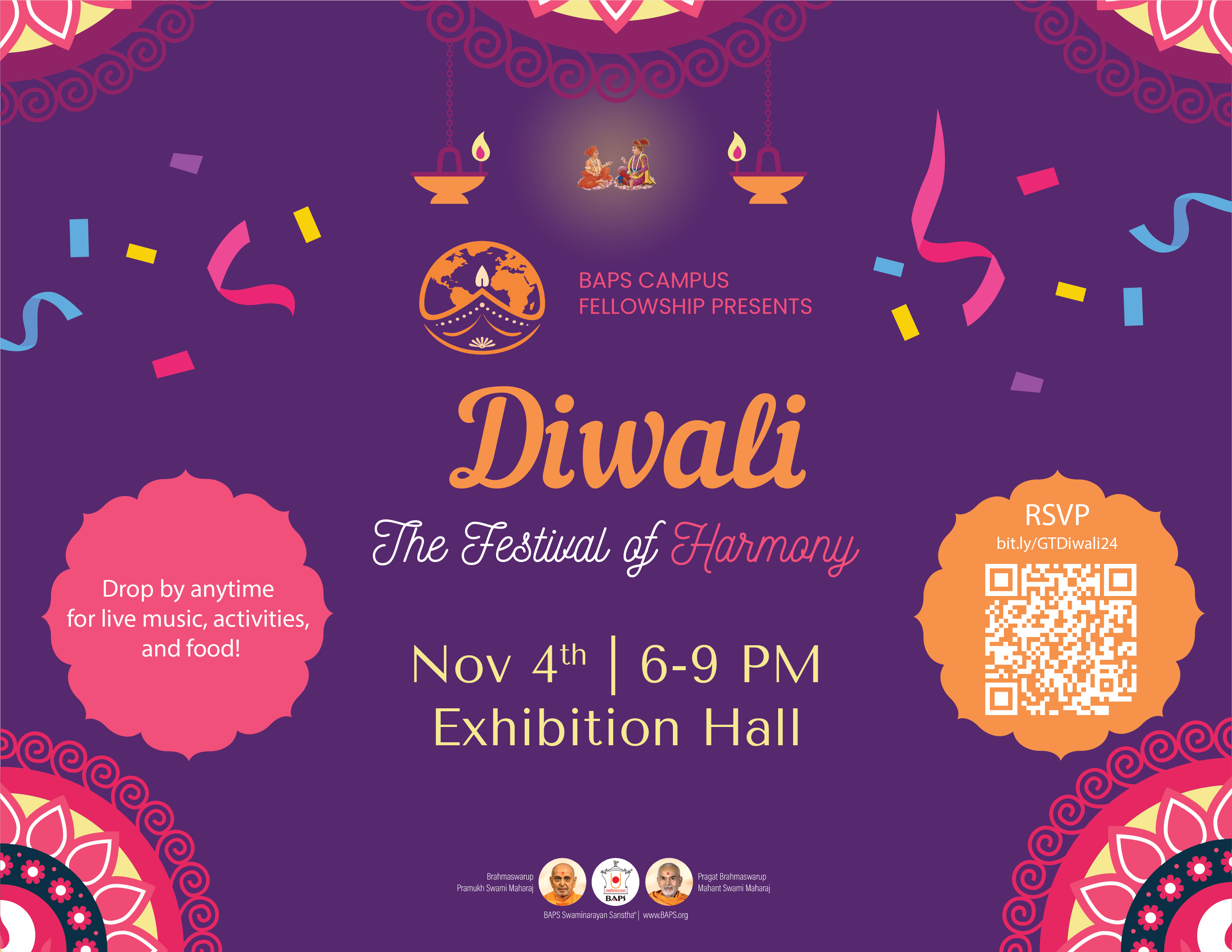 Drop in anytime between 6-9pm at our event in the Exhibition Hall which celebrates Diwali, the festival of lights! The event will focus on informing the Georgia Tech community about traditional Indian culture through a cultural exhibition about Diwali, a festival celebrated by individuals from around the world. Last year, we had another great attendance of 900 students, faculty, and volunteers, and we are extremely excited to welcome you all back this year! Although the main celebration of this event is around Diwali, the underlying values that we highlight are really what impact people and are relatable to all. This year's theme, “The Festival of Harmony” will connect individuals to Indian culture and help embrace diversity on our campus. As attendees enter the event, they will go through a unique exhibition that will explain Diwali and its values through interactive activities.