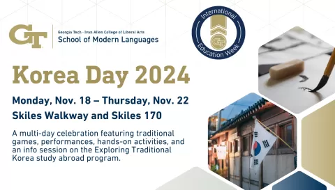 Celebrate Korea Day 2024 with three days of exciting events on Nov. 18, 20, and 22 from 10 a.m. to 3 p.m. at Skiles Walkway. Enjoy traditional Korean games, inspired by Squid Game, and take on the Hot Noodle Challenge. Experience live performances of traditional Korean dancing and Samulnori (a percussion quartet) on Nov. 18 from noon to 3 p.m., along with hands-on activities like Korean painting and calligraphy. Don’t miss the info session on the Exploring Traditional Korea study abroad program, happening on Nov. 21 from 3:30 to 4:30 p.m. in Skiles 170, offering insight into this summer study abroad opportunity with a program fee of only $1,000.