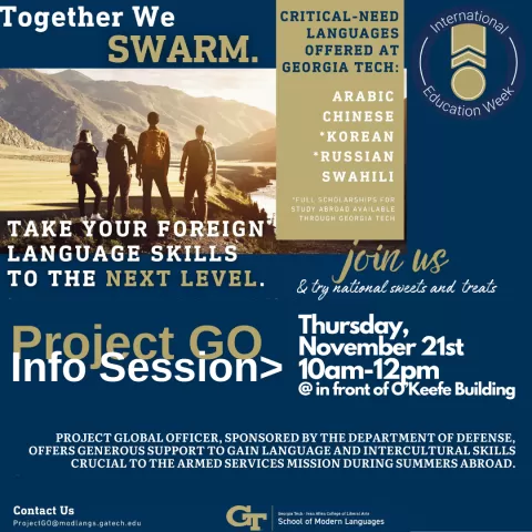 Join us to learn about Project Global Officer (Project GO), a fully funded opportunity for students to study Russian and Korean abroad. Meet alumni, enjoy international treats, and discover how this program can enhance your language and cultural expertise.