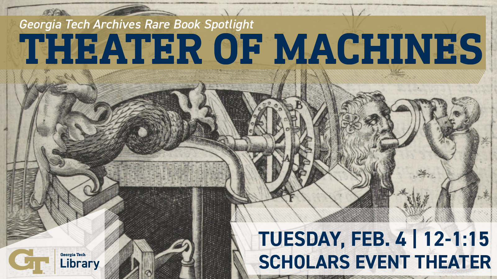 Join the Georgia Tech Library Tuesday, Feb. 4 from 12 p.m. to 1:15 p.m. in the Scholars Event Theater, located on the Price Gilbert Library’s first floor, for an exploration into rare 16th and 17th century books on mechanical engineering from the genre known as the “Theater of Machines.”
