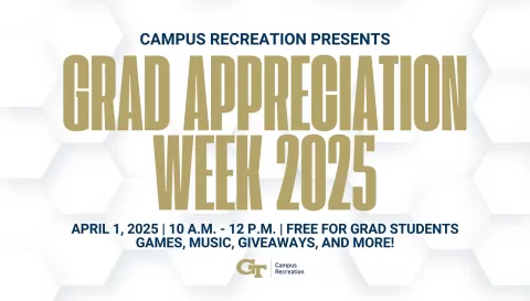 Hey grad students! Join Campus Recreation for a FREE Grad Appreciation Week event on April 1 from 10 a.m.-12 p.m. on the CRC front lawn. We'll have yard games, music, and giveaways, plus free access to the facility all day for grad students with an active BuzzCard. Can't wait to see you there!