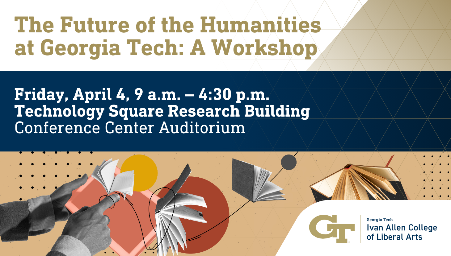 The Chairs of the Schools of History and Sociology, Literature, Media and Communication, Modern Languages, and Public Policy invite you to a special event on the future of the humanities at Georgia Tech. This interactive workshop will highlight ongoing humanities research at Tech and engage external experts in a discussion on expanding collaborative humanities initiatives.