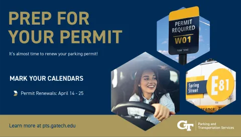 The parking permit renewal portal will be open from April 14 – 25, 2025. During this period, current permit holders can log in to their Georgia Tech Driver Seat account and renew their parking permit for the upcoming academic year. Renewing a permit is easy, it only takes a few minutes to complete and all you need is your vehicle information. All permits are virtual, so once you renew, you are good to go for the upcoming academic year.