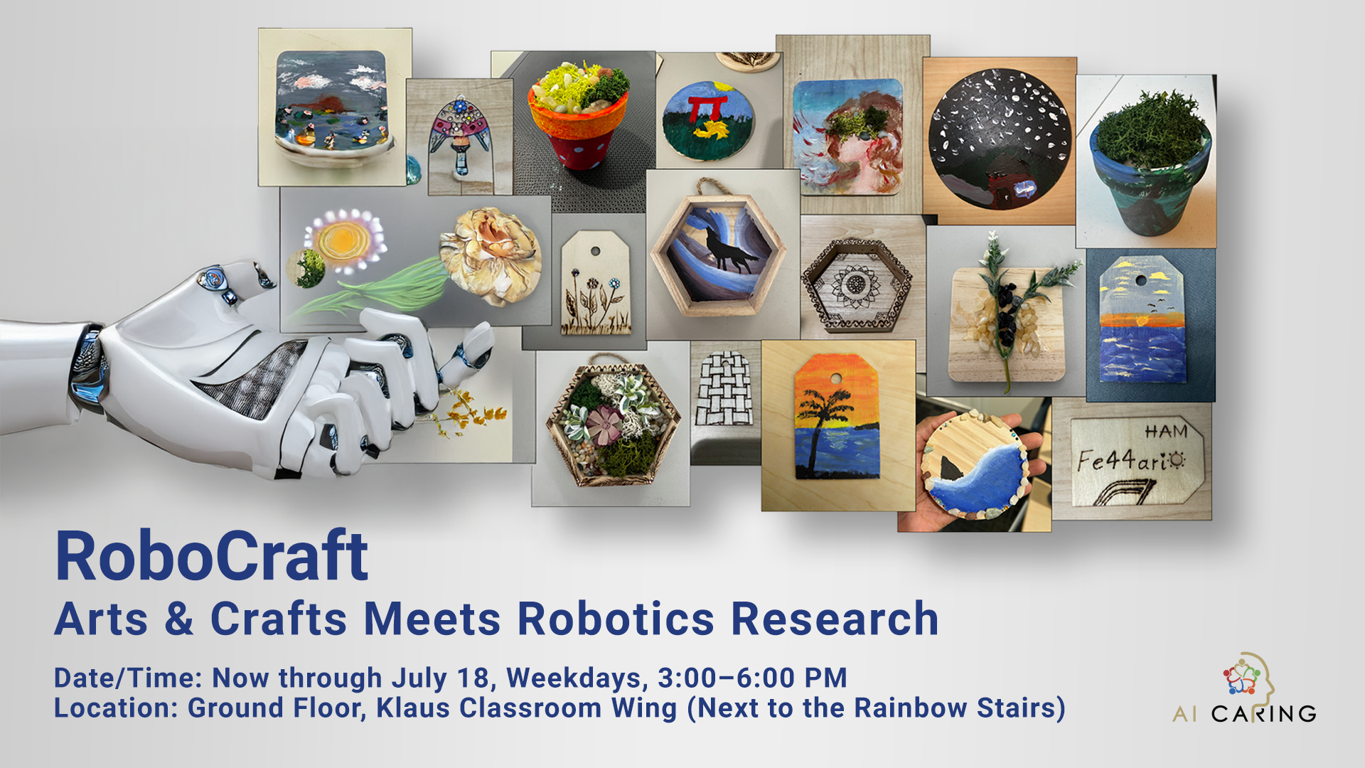 Hosted by AI-CARING researchers at Georgia Tech, RoboCraft is a walk-in arts and crafts center that brings together hands-on creativity and robotics research. Led by Kartik Ramachandruni and Maithili Varang Patel, the experience is part of an interactive study exploring how robots can learn to assist humans by observing natural, everyday behavior.