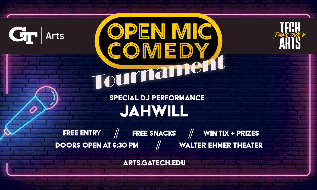 Think you’ve got what it takes to bring the laughs? Join us for the Comedy All-Stars Tournament, where Georgia Tech’s funniest students go head-to-head for the ultimate prize—a chance to open for Josh Johnson’s Flowers Tour Comedy Show!