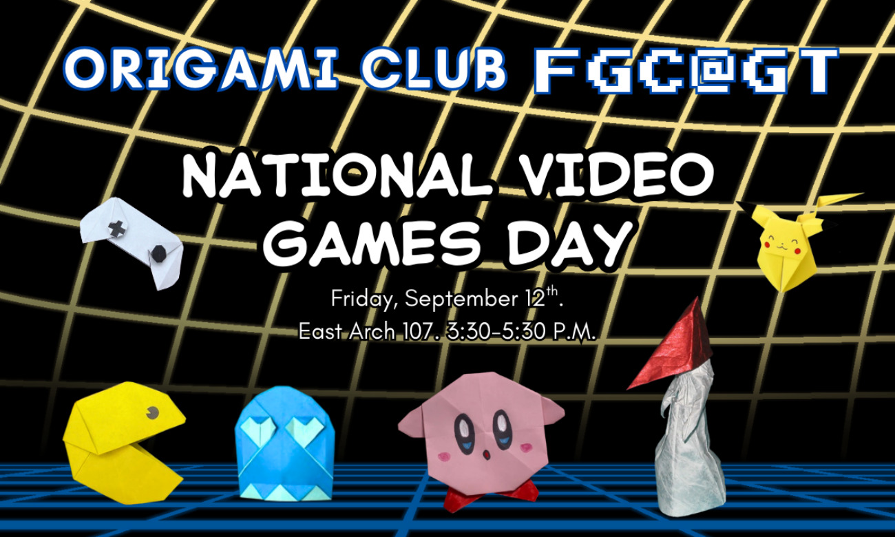 This week, we'll be folding video game characters in honor of National Video Games Day, in partnership with the Fighting Game Community at Tech. We will teach you. we are fun. we are free. we are awaiting you.