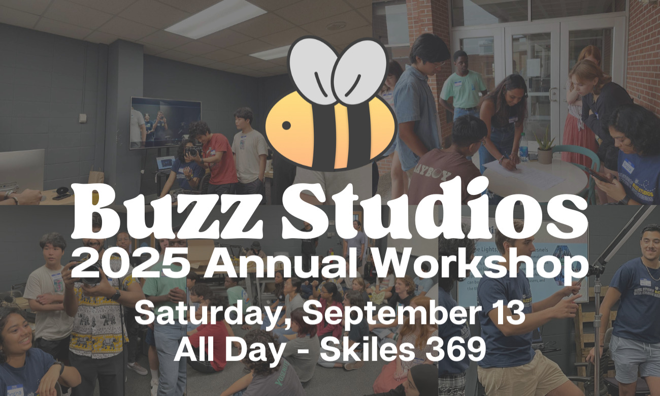 Join Buzz Studios for their traditional annual workshop and spend the day learning the basics of cinematography, sound mixing, and lighting! After the crash course is complete, work with a team to shoot a one-page mini-production. No prior experience is necessary to come and see exactly what goes into a student film set. Breakfast and lunch are provided with RSVP, and a dinner social off-campus will follow.