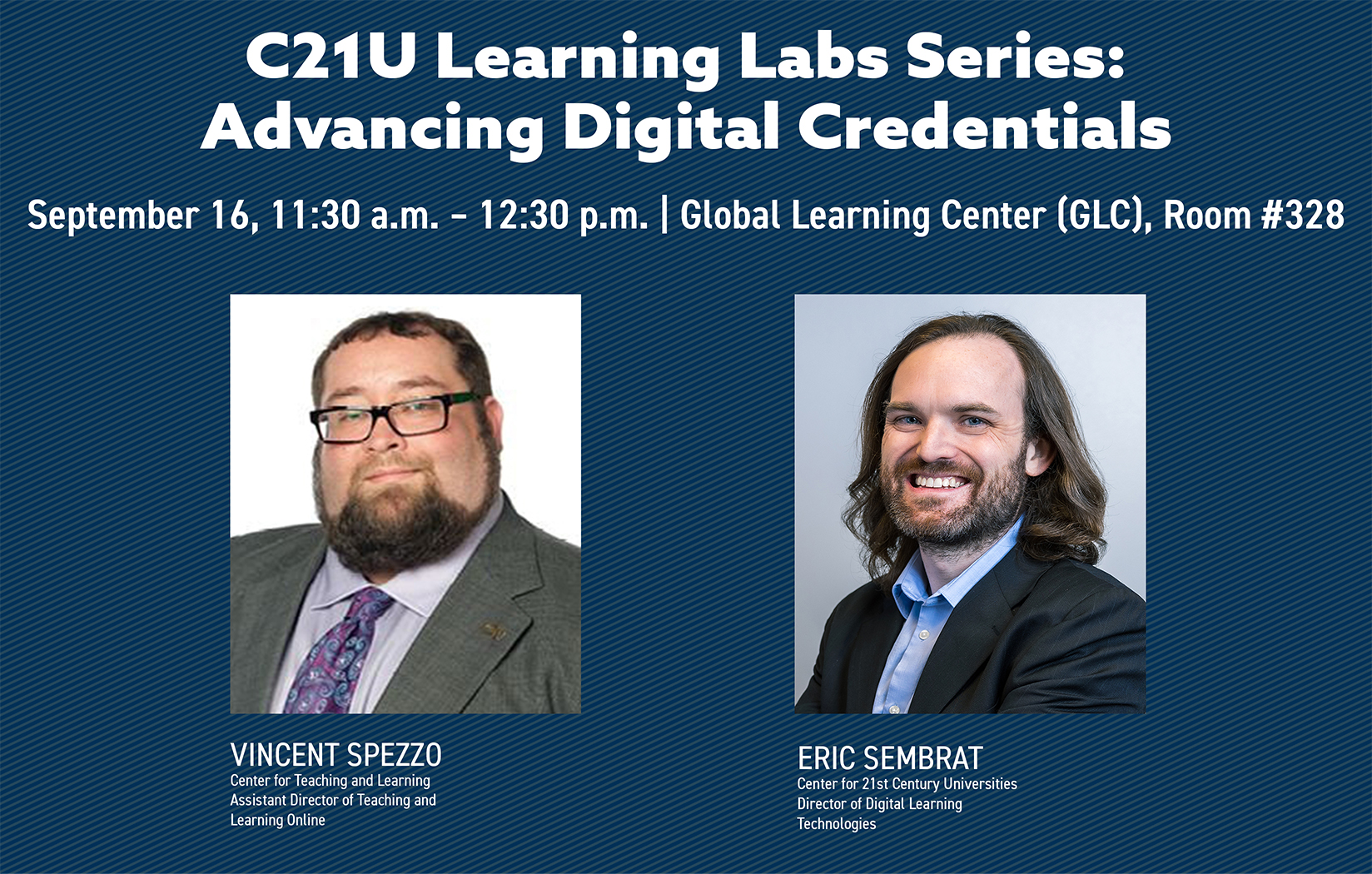 Join us for the C21U Learning Labs Series: Advancing Digital Credentials. The bring-your-own-lunch session led by C21U Director of Digital Learning Technologies Eric Sembrat and CTL Associate Director of Teaching and Learning Online Vincent M. Spezzo will explore how future use-cases for digital credentials can enable a more integrated approach from education to enterprise.
