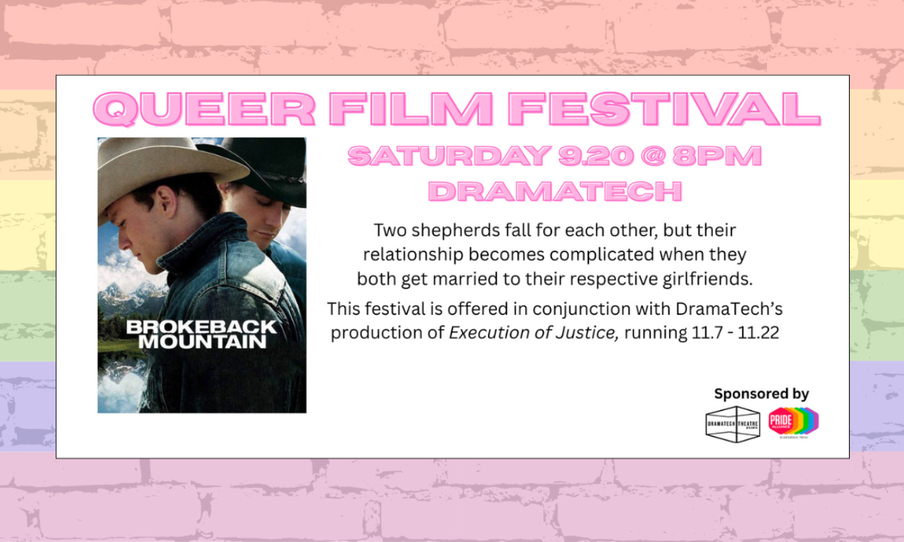 Join DramaTech and Pride Alliance for the first in a series of queer film screenings featuring movies and documentaries about queer history! Our second movie is Brokeback Mountain. It's a movie about two shepherds who fall for each other, and whose relationship becomes complicated when both get married to their respective girlfriends.