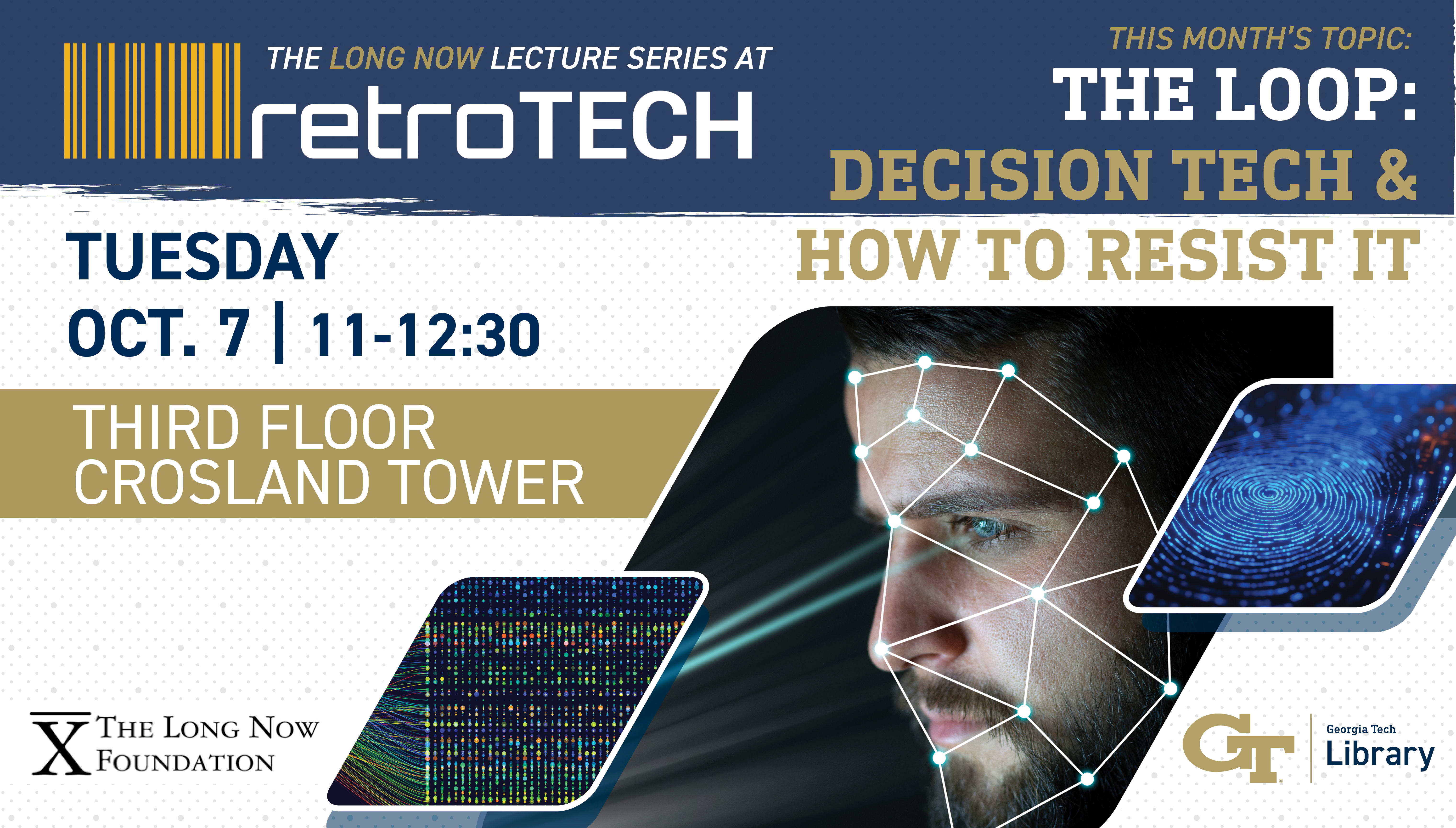 Join the Georgia Tech Library in the retroTECH Lab, located on the third floor of Crosland Tower, Tuesday, Oct. 7 from 11 a.m. to 12:30 p.m. for The Long Now Lecture Series @ retroTECH.