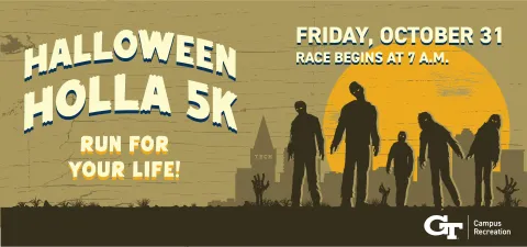 Lace up and run for your life at Campus Recreation's Halloween Holla 5K! Students, faculty, staff, alumni, and the local community are all invited to take on our annual race. Starting at the Campus Recreation Center, the course follows the Pi Mile loop through campus—just watch out for zombies along the way. Awards go to top finishers, plus there are prizes for the best costumes! Check-in opens at 6:30 a.m., and the race begins at 7 a.m.