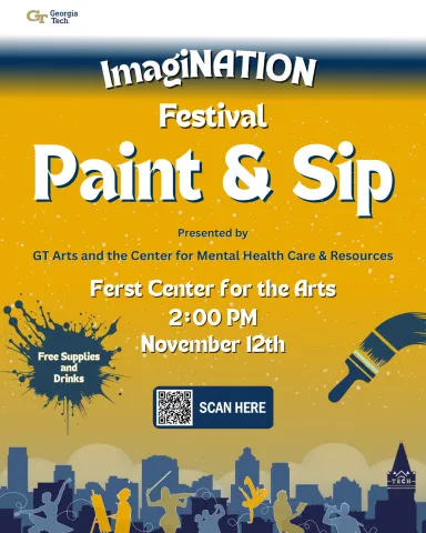 Take a break, unwind, and express yourself creatively at our Paint & Sip Workshop, co-hosted by GT Arts and the Center for Mental Health Care and Resources. As part of the ImagiNATION Festival, this event brings together art, mental health, and community in a relaxing outdoor setting.