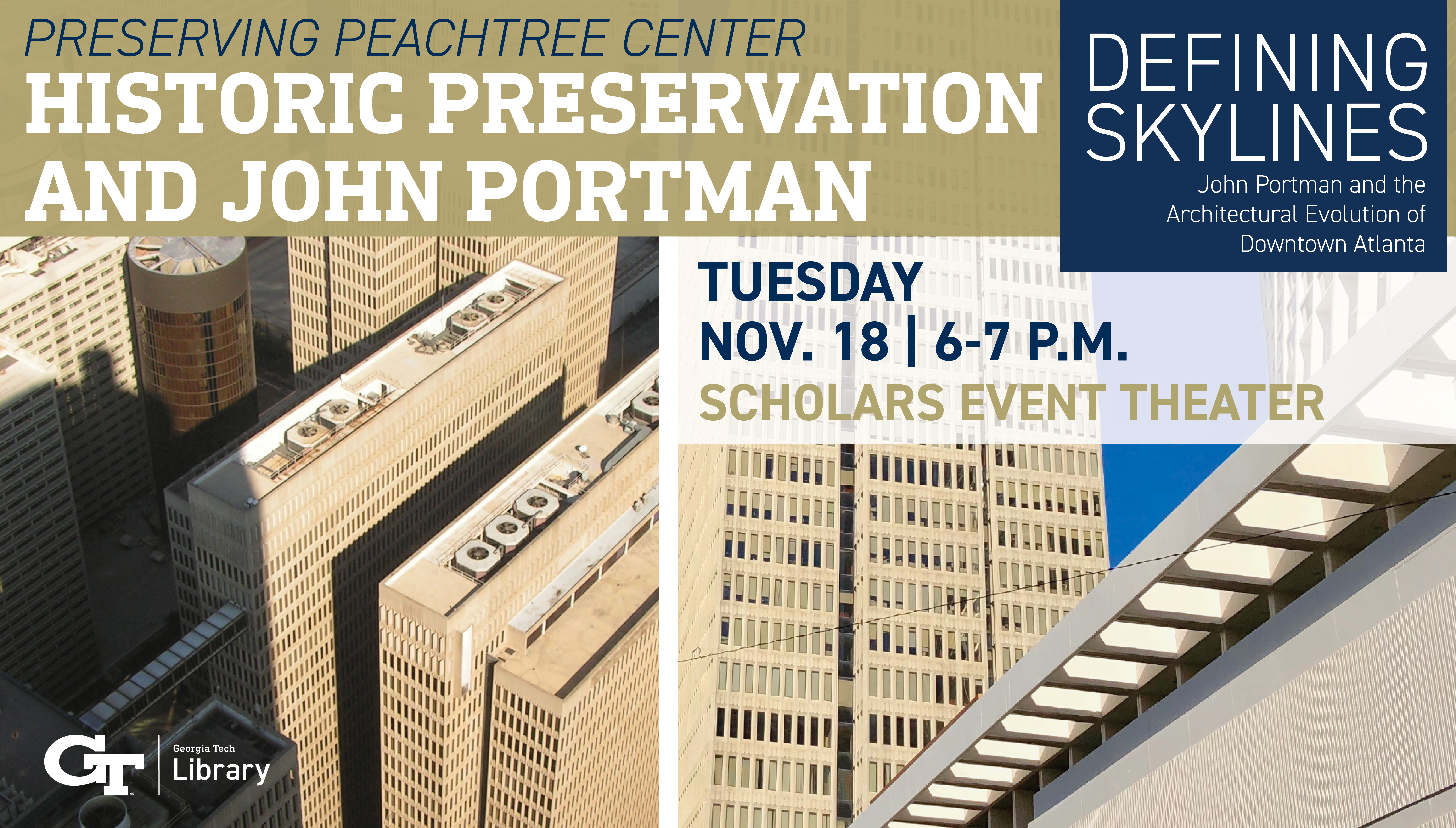 Join the Georgia Tech Library for Preserving Peachtree Center: Historic Preservation and John Portman Tuesday, Nov. 18 from 6 to 7 p.m. in the Scholars Event Theater, located on the first floor of Price Gilbert.