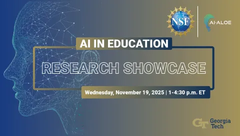 AI-ALOE will host a Research Showcase in person at Georgia Tech on Wednesday, Nov. 19, 2025, from 1 to 4:30 p.m. in the Walter G. Ehmer Theater (Atlantic) and Rafael Bras Room at the Student Center. This interactive event will bring together researchers, educators, and innovators to explore the latest breakthroughs in AI for learning and education.