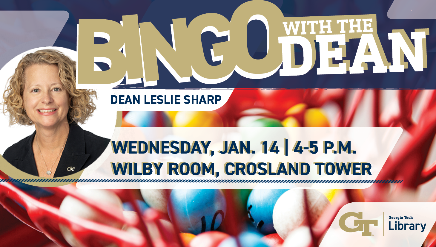 Join the Georgia Tech Library in the Wilby Room, located on the Grove Level of Crosland Tower, Wednesday, Jan. 14 from 4 to 5 p.m. to kick off spring semester with Bingo with the Dean.