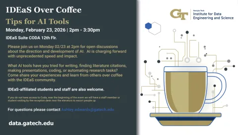 What AI tools have you tried for writing, finding literature citations, making presentations, coding, or automating research tasks? Come share your experiences and learn from others over coffee with the IDEaS community.