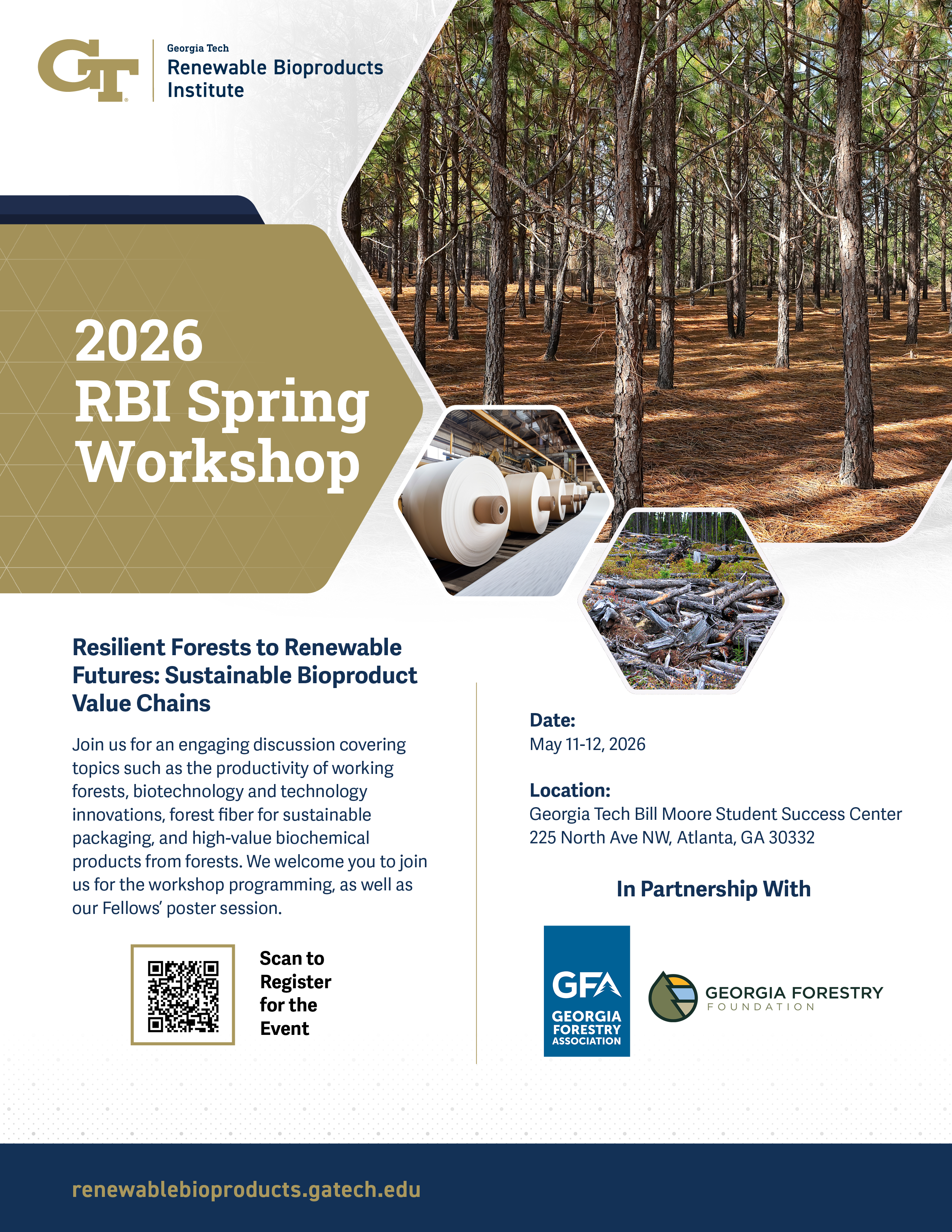 For more details, visit the Spring Workshop page here: https://renewablebioproducts.gatech.edu/rbi-2026-spring-workshop